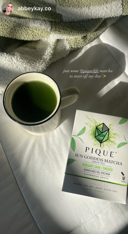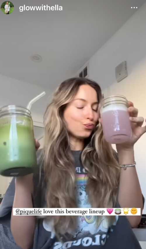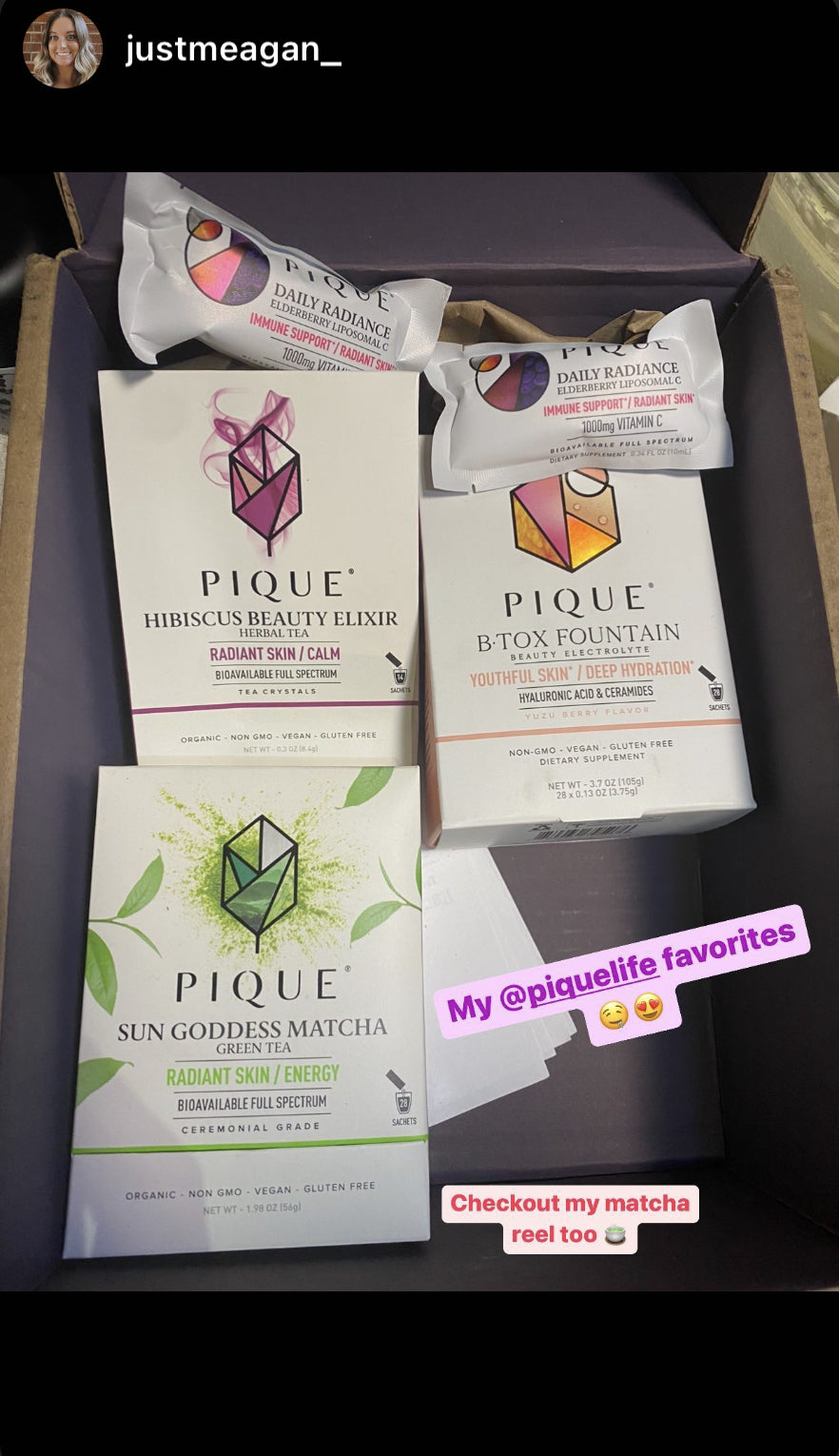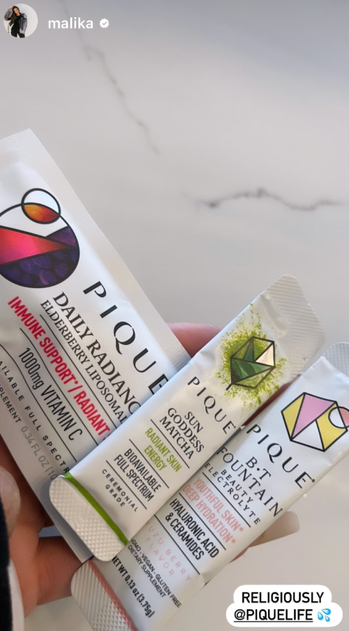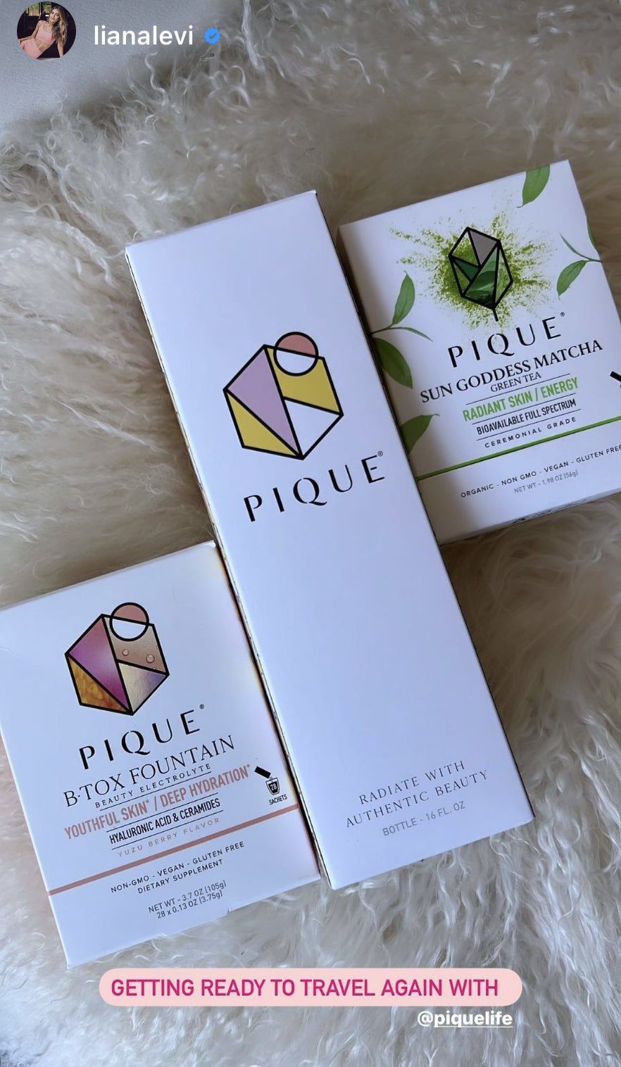 “I’m obsessed with Pique’s Hibiscus Beauty Elixir. I am all about beauty from within and I love adding it to my night time routine! It is packed with powerful antioxidants and Vitamin C to support glowing, healthier looking skin.”
