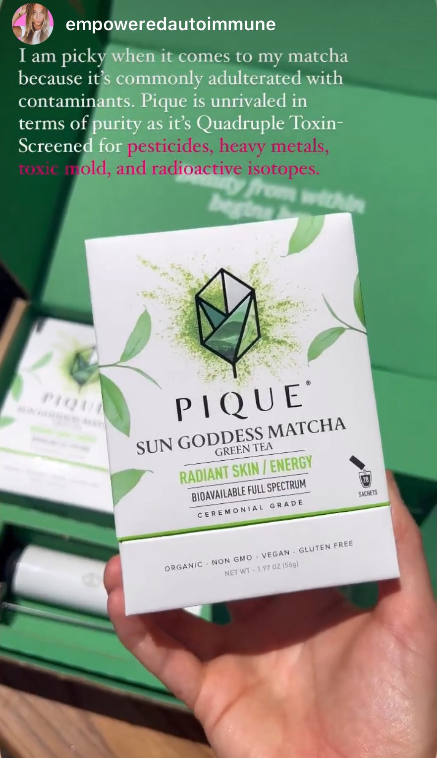 "Pique is my absolute favorite. I recommend them to all my patients. I can honestly say nothing compares to their teas— it actually feels better in my body. You’ll be amazed at what the phytonutrients do for your skin."