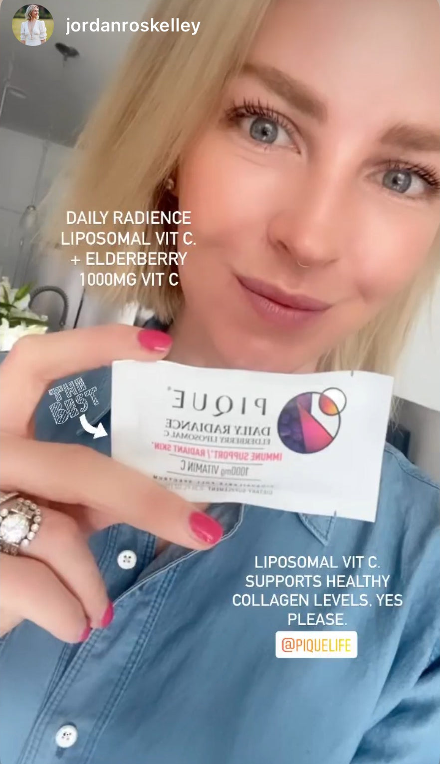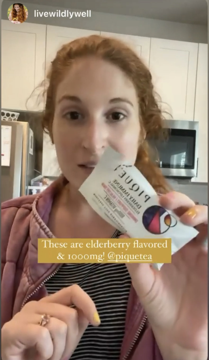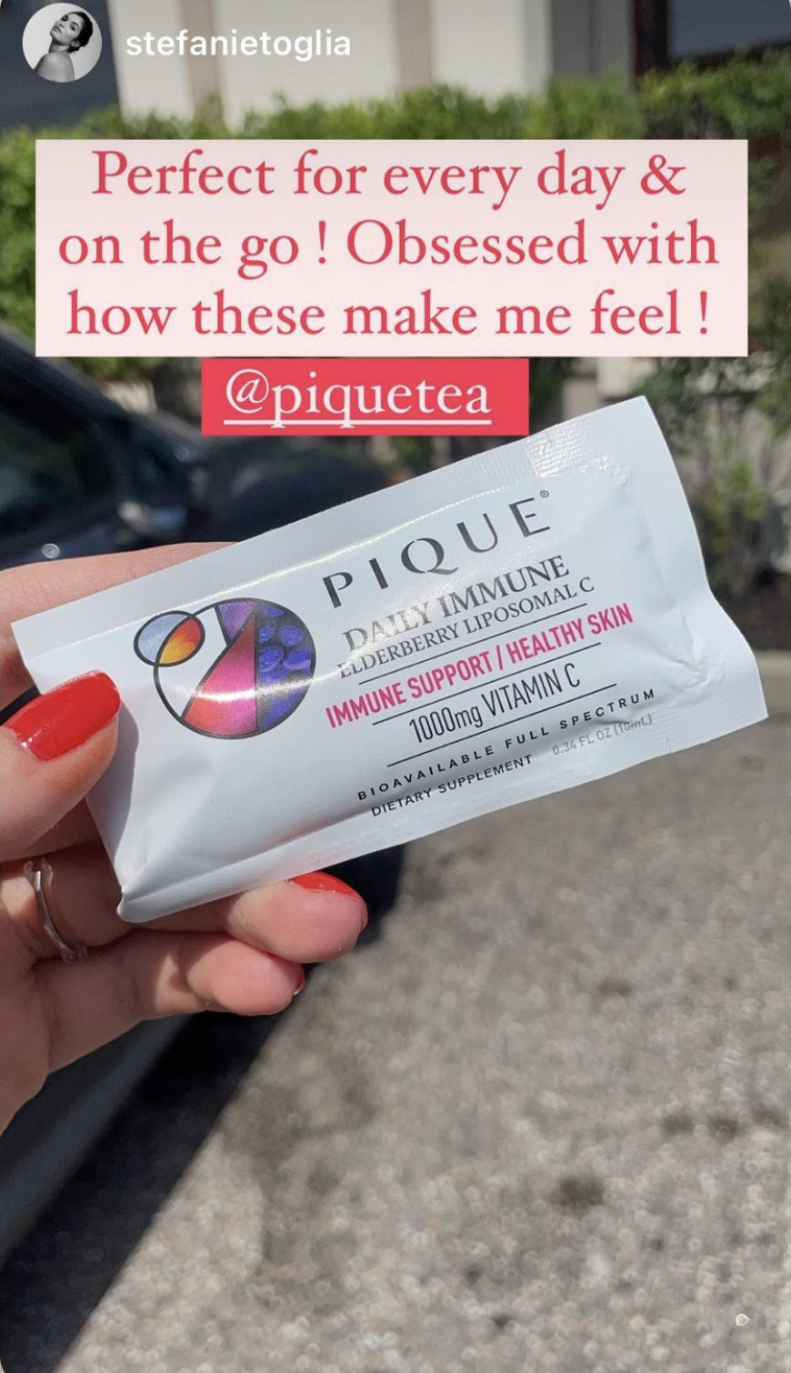 "I’ve been loving Pique's Daily Radiance. They contain both vitamin C and elderberry for antioxidant support and are maximized for absorption, which means you actually get the most benefits of these two powerhouses.”