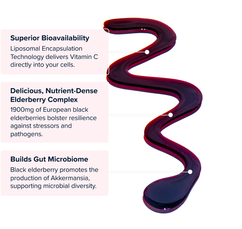 This is my immune-support go-to: 1,000 mg vitamin C delivered in liposomes + a solid hit of elderberry antioxidants.